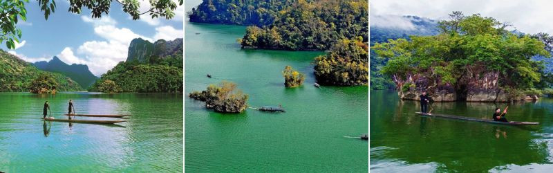 Chiều: Đến bến Buốc Lốm, Quý khách lên thuyền xuôi dòng khám phá hồ Ba Bể – được mệnh danh là “viên ngọc xanh” của núi rừng Đông Bắc.