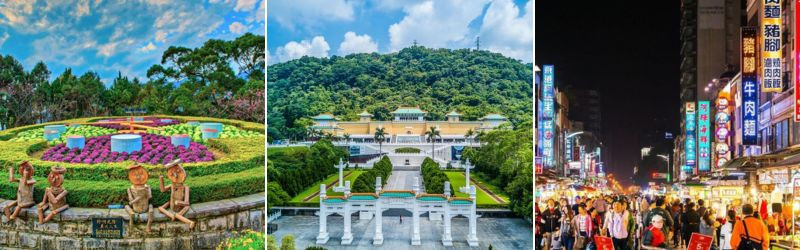 - Chụp hình bên ngoài Viện Bảo Tàng Cố Cung Quốc Gia Đài Loan – nằm ở thủ đô của Đài Bắc, là một trong những viện bảo tàng lớn nhất thế giới. Viện bảo tàng được xây dựng vào năm 1965, ở một vị trí đắc địa gọi là “ngọa hổ tàng long”. Với bộ sưu tập trải dài suốt 10.000 năm từ thời đồ đá đến cuối triều đại nhà Thanh và có hơn 696.000 hiện vật.