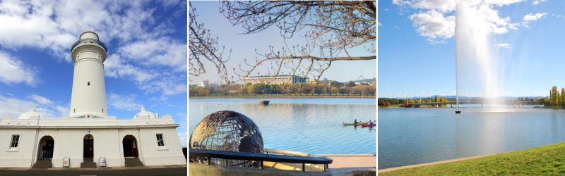 - Xe chạy dọc theo hồ Burley Griffin tuyệt đẹp.