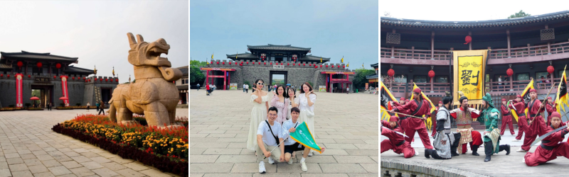 - Phim Trường Tam Quốc Thành là phim trường quy mô lớn của Đài truyền hình Trung ương Bắc Kinh, Du khách sẽ có cảm giác như mình được sống lại trong thời đại vua chúa hay được làm một nhân vật trong phim cổ trang của Trung Quốc.
