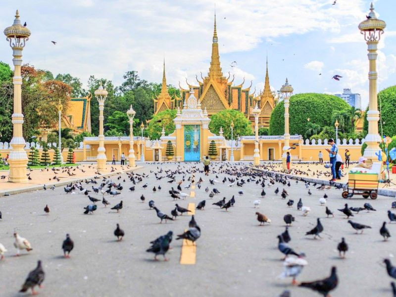 Đến thủ đô Phnom Penh, du khách sẽ được chiêm ngưỡng Hoàng Cung Campuchia – nơi sinh sống và làm việc của Quốc vương Norodom Sihamoni.Trong khuôn viên là Chùa Bạc nổi tiếng, nơi lưu giữ tượng Phật bằng vàng và ngọc lục bảo quý hiếm, sàn lát bằng hơn 5.000 viên bạc thật.