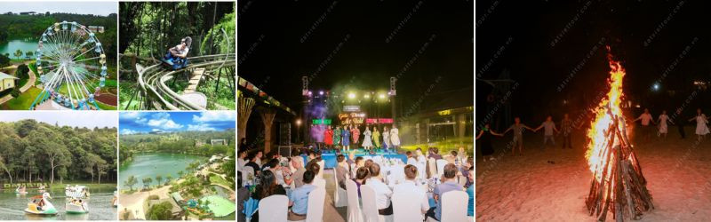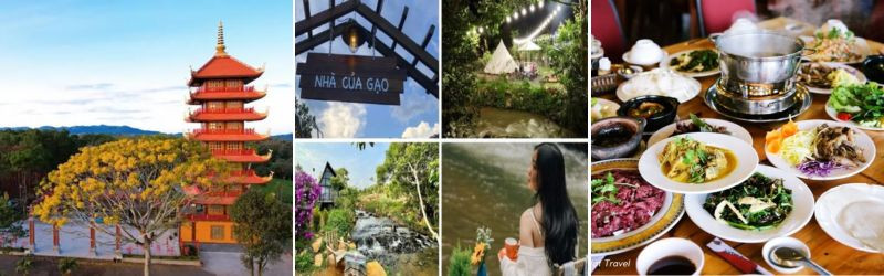 - Kết thúc chương trình, đoàn tham quan toàn cảnh KDL Damb'ri và sử dụng các dịch vụ vui chơi giải trí như: Đạp vịt, đi thang máy tham quan thác Đambri, đi xe trượt cảm giác mạnh (Alpine Coaster) tham quan thác Dasara, tham quan làng Châu Mạ, xem phim 8D.