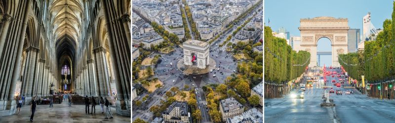 - Arc De Triomphe – Khải Hoàn Môn - một trong những công trình biểu tượng của Nước Pháp, nơi nhiều sự kiện lịch sử quan trọng ảnh hưởng đến nước Pháp được tổ chức ở đây, Nhiều công trình điêu khắc nổi tiếng về những trận đánh lịch sử được trưng bày ở đây, đặc biệt công trình điêu khắc tên “The Marseillaise” của điêu khắc gia nổi tiếng Francois Rude.