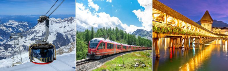 Chiều: Tham quan núi tuyết xong, xe đưa đoàn tiếp tục hành trình tới Lucerne – một trong những đô thị nổi tiếng nhất Thuỵ Sĩ, được xem là đầu mối giao thông, kinh tế, văn hoá và truyền thông của khu vực.