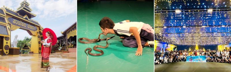 - Trung Tâm Nghiên Cứu Rắn Độc Hoàng Gia Thái Lan xem biểu diễn tài nghệ bắt rắn của nhân viên trại rắn; nghe giới thiệu về sự sinh sản và chu kỳ phát triển và công dụng của rắn.