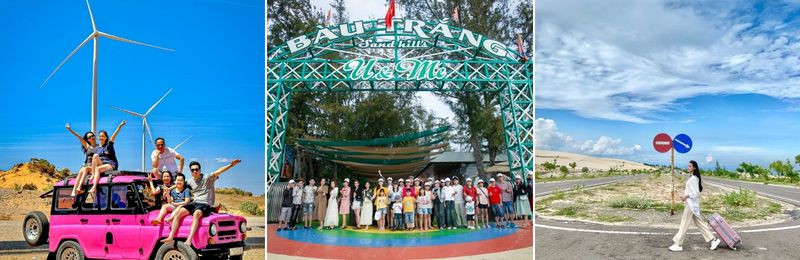 - Bàu Trắng - "Tiểu Sa Mạc Sahara" Đất Bình Thuận. Bàu trắng được bao quanh bởi những đồi cát trắng hoang sơ mà thơ mộng, kỳ vĩ mà yên bình. Du khách đứng trước những đồi cát trắng nối tiếp nhau được bao quanh bởi một hồ sen rộng lớn quanh năm mát mẻ. (Chưa bao gồm xe địa hình lên đồi cát check in)