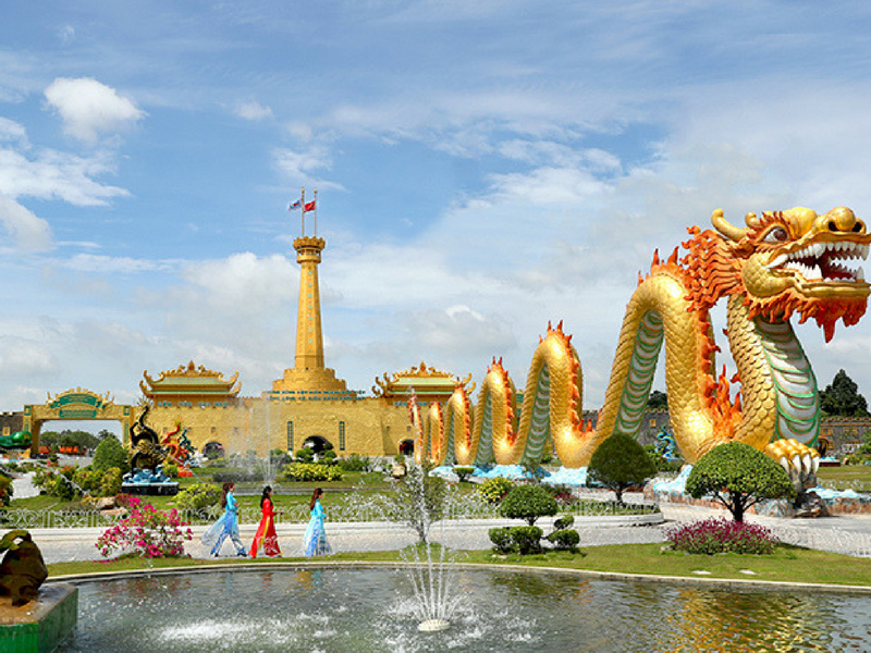 10h30: Xe đưa đoàn đến KDL Đại Nam, quý khách tham quan đền thờ Đại Nam Quốc Tự (Khu Tâm Linh), Hồ Ngọc Bích. Tham quan dãy núi Bảo Sơn trên có ngôi Bảo Tháp huyền bí bên dưới là dòng Bảo Giang dài 720m, dòng sông nhân tạo dài nhất Việt Nam chảy quanh chân núi Bảo Sơn.
