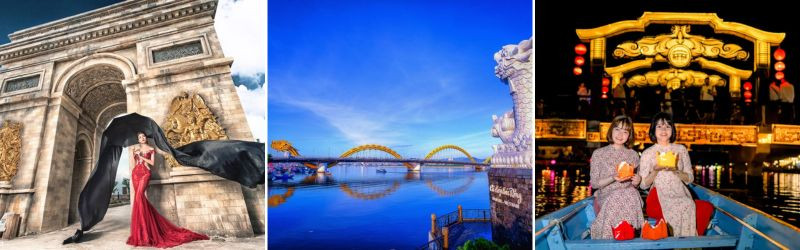 - Vòng qua Cầu Rồng lưu lại dấu ấn trên Cầu Tình Yêu, tản bộ thưởng thức không khí trong lành bên bờ Hàn Giang với tượng Cá Chép Hóa Long - Biểu tượng mong muốn vươn lên của người Đà Nẵng.