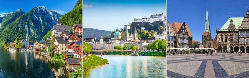 - Làng cổ Hallstatt được ví như là miền cổ tích, một trong những thị trấn trung cổ đẹp nhất tại Châu Âu. Ngôi làng có địa thế “tựa sơn, hướng thủy” vô cùng hoàn hảo theo quan niệm của phương Đông. Làng cổ Hallstatt tựa lưng vào dãy núi dãy Dachstein hùng vĩ và hướng mặt ra hồ Hallstattersee. Ngoài ra Hallstatt tập hợp những dãy nhà mang phong cách Holzhaus độc đáo nằm dọc bên hồ. Chính nhờ vẻ đẹp thơ mộng ấy mà Hallstatt được mệnh danh là “Hòn ngọc nước Áo” hay “Xứ sở thần tiên”.