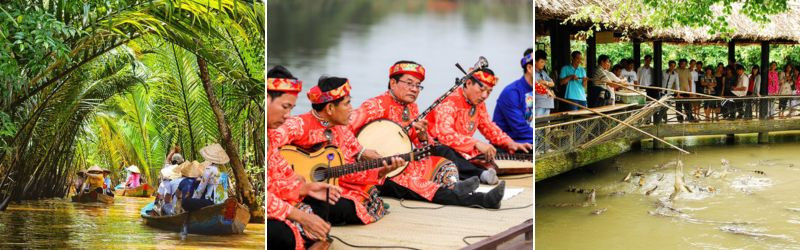 Chiều: Thuyền tiếp tục đưa khách đến cù lao Phụng tham quan di tích ông Đạo Dừa, tham quan trại nuôi cá sấu và câu cá sấu (Chi phí câu cá sấu tự túc).