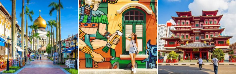 - Kampong Glam là một khu phố lịch sử và văn hóa nằm ở trung tâm Singapore, nổi tiếng với sự kết hợp độc đáo giữa di sản Mã Lai, Ả Rập và Hồi giáo. Nơi đây từng là nơi sinh sống của cộng đồng người Mã Lai và người Ả Rập từ thế kỷ thứ 19 cho đến nay vẫn giữ được những dấu ấn đặc trưng.