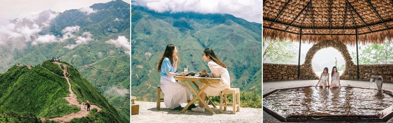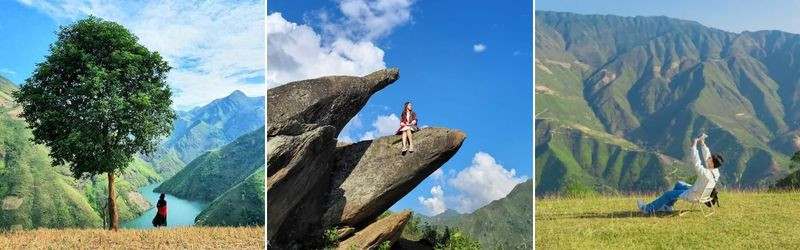 - Mỏm Cá Heo: một điểm đến check-in đang gây sốt đối với giới trẻ, Mỏm đá này được tạo bởi hai phến lớn tựa như hai con cá heo đang bơi lượn giữa “biển” mây.