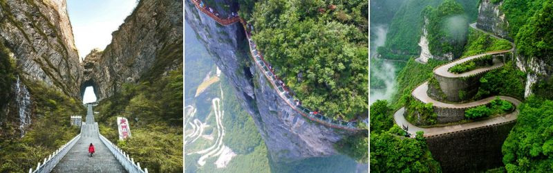 - Ngoài ra quý khách còn được dạo bước trên con đường thuỷ tinh hay còn gọi là Sạn Đạo Kính (đã bao gồm giày đi trên kính), đi qua Hành lang Quỷ Cốc, tham quan Cổng Trời – còn gọi là Động Thiên Môn.