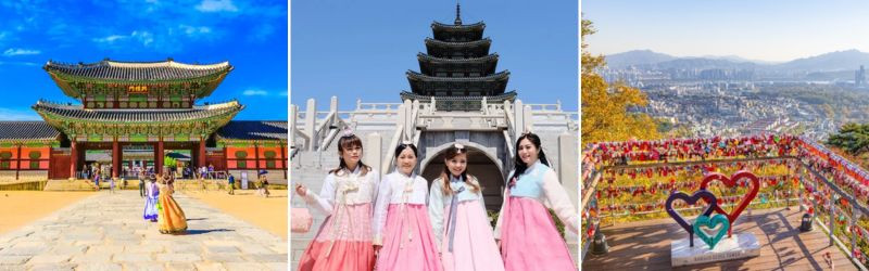 - Cung Điện Gyeongbok (Cảnh Phúc Cung) – tiêu biểu cho nền nghệ thuật kiến trúc phương Đông chịu ảnh hưởng của văn hóa Trung Hoa và là niềm tự hào của người dân Hàn Quốc. Là cung điện đầu tiên của triều đại Joseon, Gyeongbokgung được coi là cung điện đồ sộ nhất Hàn Quốc.