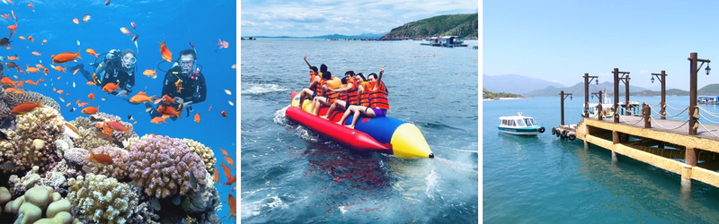 - Quý khách tự do chơi các trò chơi: Nhảy dù, lặn biển có bình dưỡng khí, phao chuối, đi bộ dưới đáy biển...(chi phí trò chơi quý khách tự túc)