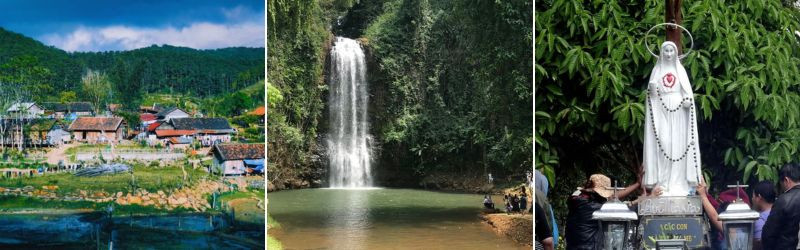 - Check in Tượng đài Chiến thắng Măng Đen - chiêm bái Đức Mẹ Măng Đen: Nhiều người đến hành hương để cầu lộc, con cái… Điều này đã khiến cho Măng Đen thêm phần lôi cuốn du khách khi về thăm. Nơi đây có cảm quan trong lành, thăm Măng Đen để nghe những câu chuyện mang tính tâm linh đầy xúc động gắn với Tượng Đức Mẹ Măng Đen nổi tiếng linh thiêng.