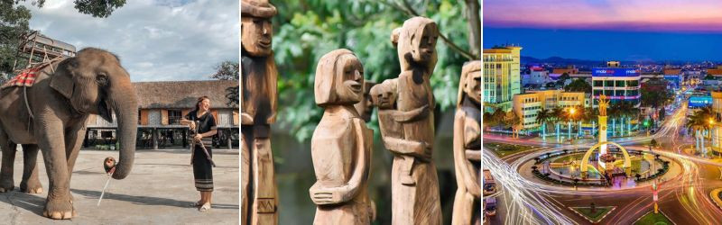 - KDL Buôn Đôn - Quê hương của nghề săn bắt và thuần dưỡng voi. Đến đây, du khách sẽ có cơ hội trải nghiệm cảm giác hồi hộp pha lẫn thú vị khi cưỡi trên những chú voi khổng lồ tham quan KDL, ngắm cảnh hùng vĩ của Rừng Nguyên Sinh Quốc Gia Yok Đôn, tham quan CẦU TREO và ngắm cảnh sông Sêrêpôk, nhà sàn cổ 120 năm của người Lào, tìm hiểu truyền thuyết Vua Săn Voi, thăm buôn làng của người dân tộc: Lào, Khơme, Êđê, M’Nông