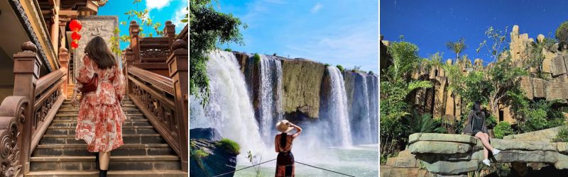 - KDL thác Dray Sáp - Với độ cao khoảng 50m thác Dray Sap, trải dài 100m, có thể nói đây là ngọn thác đẹp và hùng vỹ nhất khi đến với Tây Nguyên. Thác Đray Sáp ầm ầm tuôn trào suốt ngày đêm bên những vách đá sừng sững tạo nên sự hùng vĩ hiếm có. Xung quanh là khu rừng đặc dụng có giá trị sinh học cao với khí hậu mát mẻ, trong lành không chút khói bụi, quý khách sẽ có những phút giây thư giãn tuyệt vời bên núi rừng thiên nhiên.