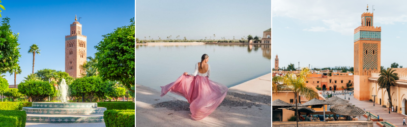 - Tham quan Koutoubia Mosque - Nhà thờ Hồi giáo Koutoubia là nhà thờ Hồi giáo lớn nhất ở Marrakesh, Morocco, được thành lập vào năm 1147 bởi caliph Almohad Abd al-Mu'min ngay sau khi ông chinh phục Marrakesh từ tay người Almoravids. Đây là một ví dụ quan trọng về kiến trúc Almohad và kiến trúc nhà thờ Hồi giáo Maroc nói chung. Tháp minaret, cao 77 mét, được trang trí bằng nhiều họa tiết hình vòm hình học khác nhau và trên đỉnh là một ngọn tháp và các quả cầu kim loại, cũng được coi là một địa danh quan trọng và biểu tượng của Marrakesh.