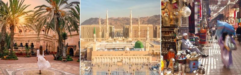 Sau bữa sáng, quý khách dành trọn vẹn một ngày để khám phá những địa điểm nổi tiếng của thành phố Marrakech hay còn gọi là “Thành phố đỏ” - thành phố lớn thứ 4 của Maroc, nơi mà Medina của Marrakech được UNESCO công nhận là di sản văn hóa thế giới vào năm 1985. Quý khách tham quan: