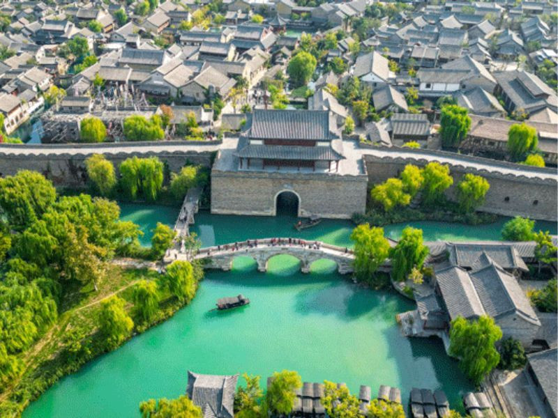 - Sau đó đoàn di chuyển về Tế Nam. Đoàn di chuyển tham quan Minh Thủy Cổ Thành – khu phố cổ mang đậm nét văn hóa Sơn Đông, với những con ngõ yên bình, cửa tiệm truyền thống và cảnh quan tái hiện đời sống xưa. Nơi đây được mệnh danh là “nửa nhân gian khói lửa, nửa mộng cảnh thi họa”, tái hiện đúng không gian mà nữ thi nhân Lý Thanh Chiếu từng say đắm đến mức “lạc lối chẳng muốn quay về”. Khu vực được xây dựng ven dòng suối tự nhiên, hài hòa giữa vẻ thơ mộng của thủy trấn vùng Giang Nam và sự trong trẻo, linh động đặc trưng của thành phố suối Tế Nam.
