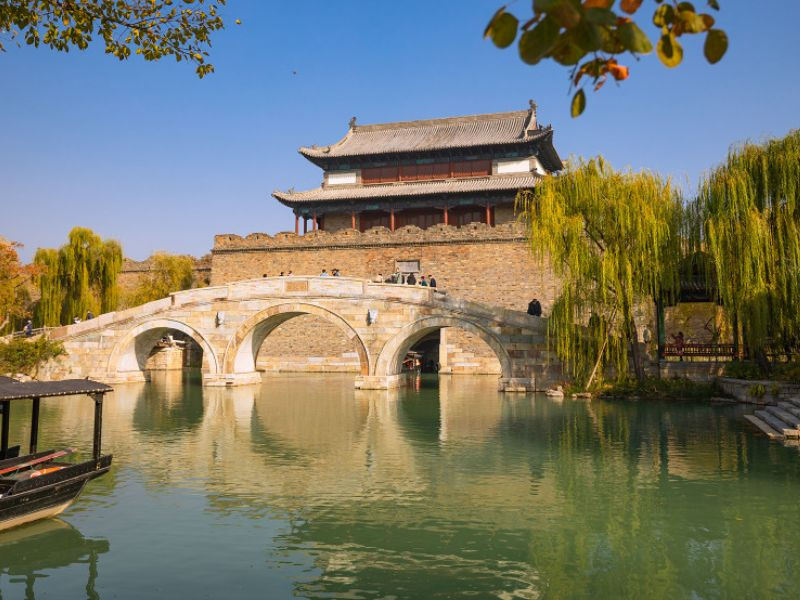 - Quý khách tiếp tục tham quan Hồ Đại Minh – viên ngọc xanh giữa lòng thành phố, nơi mặt nước phản chiếu bóng liễu thướt tha và những cây cầu đá cổ kính. Đây cũng là điểm hẹn thơ mộng, gắn liền với nhiều giai thoại văn nhân Trung Hoa. Hồ Đại Minh không chỉ đẹp về cảnh sắc, mà còn gắn với truyền thuyết lãng mạn giữa Hạ Vũ Hà và vua Khang Hy, từng được đưa vào phim nổi tiếng Hoàn Châu Cách Cách.