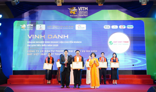 Ngày 10/4/2026, trong khuôn khổ Hội chợ Du lịch Quốc tế Việt Nam - VITM Hà Nội 2026 tại Lễ trao giải “Doanh nghiệp và cá nhân tiêu biểu du lịch Việt Nam năm 2025”, Đất Việt Tour đã được Hiệp hội Du lịch Việt Nam vinh danh ở 4 hạng mục giải thưởng danh giá.