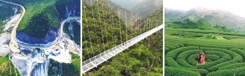 - Cầu kính Bạch Long được xây dựng tại xã Mường Sang, huyện Mộc Châu, có tổng chiều dài 632 m. Hiện cầu kính Bạch Long đã được công nhận Kỷ lục Guinness "Cầu kính đi bộ dài nhất thế giới". (Chi phí tự túc)