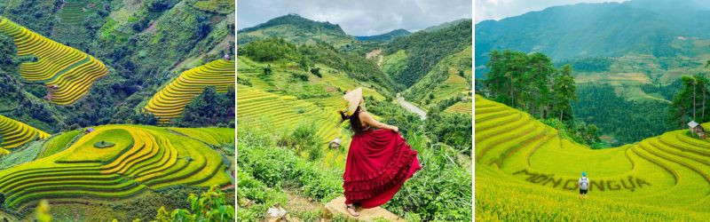 - Đến La Pán Tân, quý khách bắt đầu hành trình khám phá ruộng bậc thang Mù Cang Chải. Quý khách tự do thuê xe ôm để khám phá Mâm Xôi - danh thắng du lịch Quốc Gia. Đoàn chụp ảnh với cánh đồng lúa bậc thang đẹp nhất ở Việt Nam.