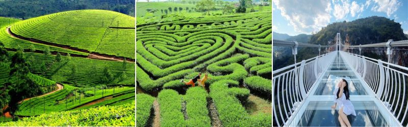 Quý khách tham quan nông trường, thăm đồi chè (đồi chè Trái Tim). Tìm hiểu về cuộc sống lao động tại nông trường chè Mộc Châu, lưu lại những tấm hình chụp xanh ngát giữa thảo nguyên đồi chè mênh mông. Sau đó, Quý khách khởi hành tham quan Cầu kính Bạch Long – quý khách sẽ chiêm ngưỡng trọn vẹn khung cảnh thiên nhiên hùng vĩ của mảnh đất Mộc Châu, một trong những cầu kính dài nhất Việt Nam hiện nay, cũng là cầu kính đi bộ dài nhất thế giới. (chi phí vé tham quan tự túc).