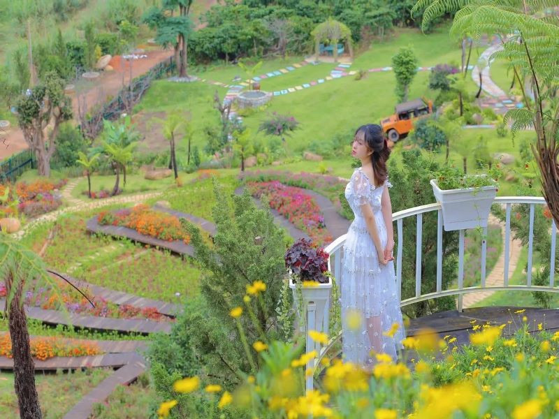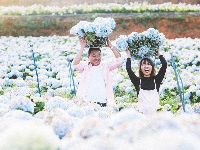 - Cánh đồng hoa Cẩm Tú Cầu: có nhiều background với décor chú trọng vẻ đẹp của tự nhiên. Ngoài hoa trọng điểm là hoa CẨM TÚ CẦU có thêm hoa hướng dương, hoa nữ hoàng xanh… phục vụ nhu cầu đa dạng của quý khách. Bên cạnh đó là những tiểu cảnh đặc sắc như cầu tình yêu, vầng trăng cổ tích và nấc thang lên thiên đường,...Quý khách cũng được check – in Cầu Vàng phiên bản Đà Lạt tại đây