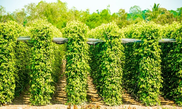 - Xe đưa đoàn Vườn tiêu - với những nọc tiêu thẳng tắp, xanh mơn mỡn, nổi tiếng chắc hạt, thơm ngon.