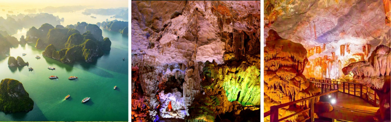 Chiều: Sau đó, xe đưa quý khách ra bến tàu du lịch, lên các động theo lộ trình tham quan: