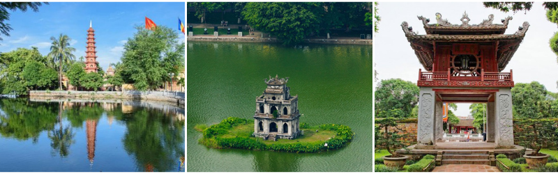- Chùa Trấn Quốc: Ngôi chùa Trấn Bắc cổ kính nhất Việt Nam với 1.500 năm tuổi nằm trên bán đảo cồn Quy linh thiêng với truyền thuyết và huyền thoại về Hồ Tây, hồ Trúc Bạch.