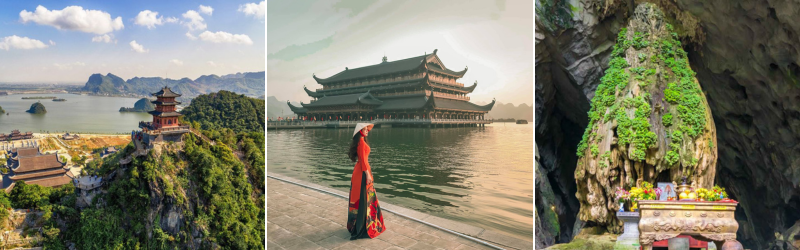 - Quần thể danh thắng Tràng An – Di sản được UNESCO công nhận là di sản văn hóa và thiên nhiên Thế giới, giúp cho Việt Nam lần đầu lọt vào danh sách 30 di sản hỗn hợp Thế Giới. Lên thuyền xuôi dòng Sào khê uốn lượn giữa cánh đồng lúa, nơi những dải đá vôi, thung lũng và những sông ngòi đan xen tạo nên một không gian huyền ảo, kỳ bí, quý khách đi đò thăm hang Sáng, hang Tối, hang Nấu rượu…
