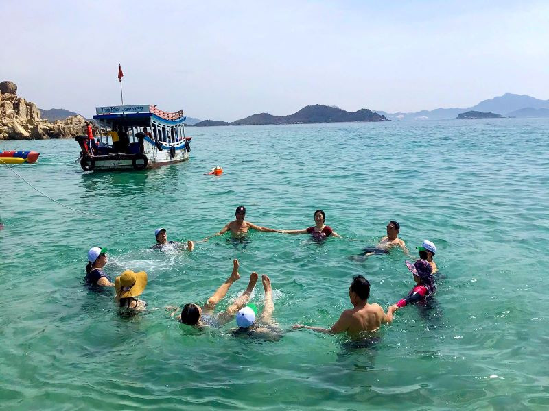 - Sau đó du khách quay trở lại cano và đích đến là Mini beach để quý khách trải nghiệm các hoạt động biển