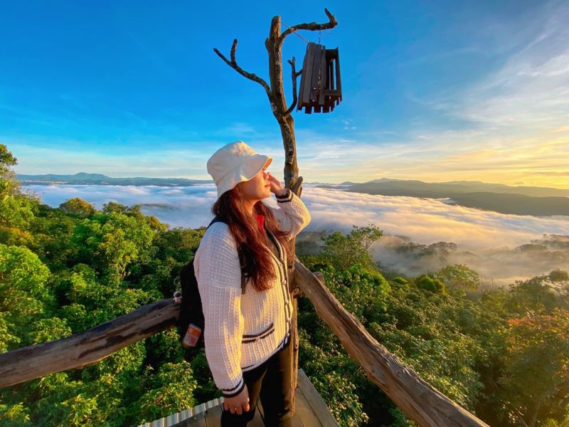 - Thiên đường săn mây - Cầu Đất Panorama để đón bình mình lên, ngắm và chụp hình với những đám mây trắng bồng bềnh. Quý khách sẽ được thỏa sức check in với những tiểu cảnh đẹp mê người nơi đây. Ngoài ra, Quý khách cũng có thể thuê những bộ trang phục theo nhiều phong cách: Cổ trang, Mông Cổ…để chụp những bộ ảnh độc đáo (chi phí thuê trang phục tự túc).