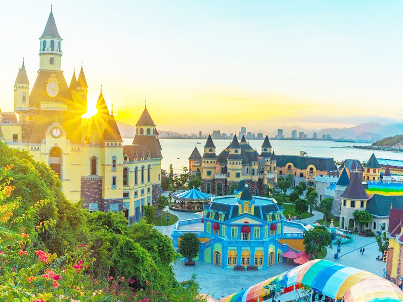 - Sunset Town Với lối kiến trúc Địa Trung Hải nhưng không kém phần sang trọng, tất cả các công trình biểu tượng tại đây đều mang lại cho du khách cảm nhận như lạc vào một châu Âu thu nhỏ. Sự chăm chút tỉ mỉ của chủ đầu tư trong từng công trình, các chi tiết giả cổ cầu kỳ hoặc những tấm áo mới đầy màu sắc như: quảng trường còn Sò, đài phun nước Trevi, bút đá tháp Obelisk, ...