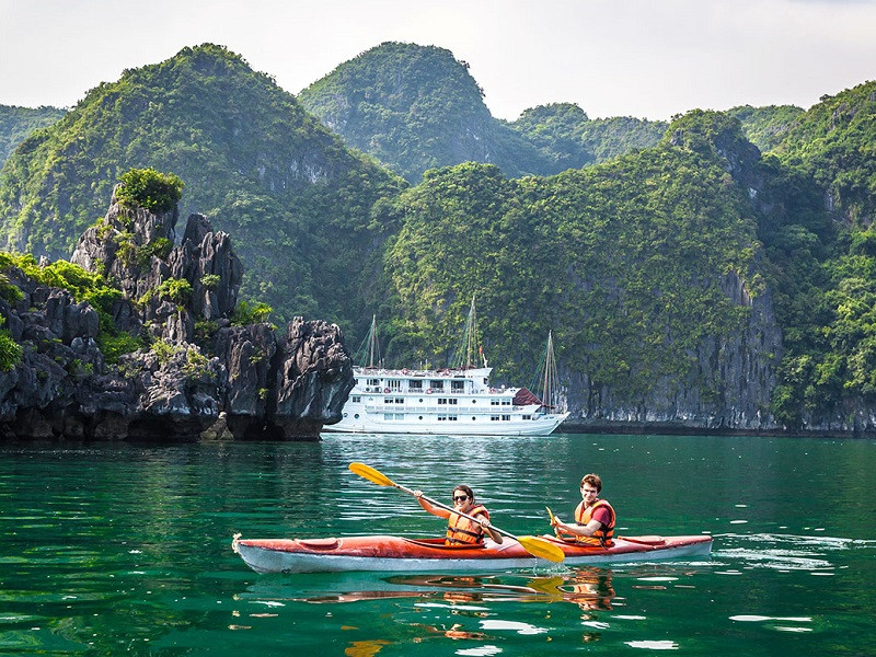 14h00: Xe đưa đoàn đến bến thuyền thăm Vịnh Hạ Long - Kỳ quan của thế giới. Tàu đón quý khách, bắt đầu hành trình khám phá vịnh Hạ Long: du khách dừng thuyền để lên thăm: