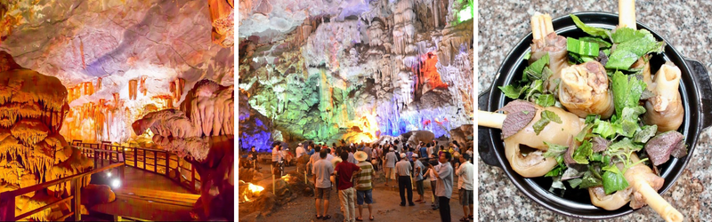 Chiều: Sau đó, xe đưa quý khách ra bến tàu du lịch, lên các động theo lộ trình tham quan: