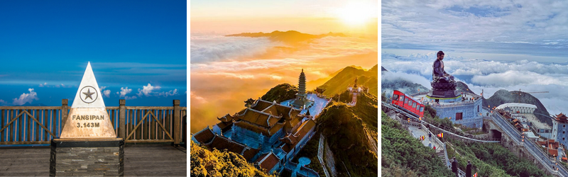- Quần thể chùa trên đỉnh Fansipan: Bước ra khỏi ga Fansipan, bạn sẽ đến ngay chùa Hạ (Thanh Phong Thiền tự). Đến đây, bạn có thể viết sớ cầu an cho bản thân và gia đình. Suốt quãng đường 600 bậc thang lên đỉnh Fansipan, từ chùa Hạ lên chùa Thượng, đâu đâu bạn cũng được nghe những bản nhạc thiền rất dễ chịu, cảm giác như đang bước vào cõi Phật. Bạn nhớ đừng bỏ qua chiêm bái đại tượng Phật A Di Đà bằng đồng cao nhất Việt Nam (21,5m), được coi là biểu tượng của quần thể văn hóa tâm linh Fansipan. Nơi đây còn có Kim Sơn Bảo Thắng Tự, Đại hùng Bảo Điện với nhiều pho tượng Phật được tạo tác kỳ công, bảo tháp 11 tầng bằng đá nguyên khối, con đường La Hán với 18 bức tượng La Hán bằng đồng, hai bên là hoa đỗ quyên rực rỡ khoe sắc. Cùng với đó là nhiều công trình Phật giáo tiêu biểu như Bích Vân Thiền tự, tượng Quan Thế Âm Bồ Tát, Tháp chuông – Vọng lĩnh cao đài, miếu Sơn Thần…