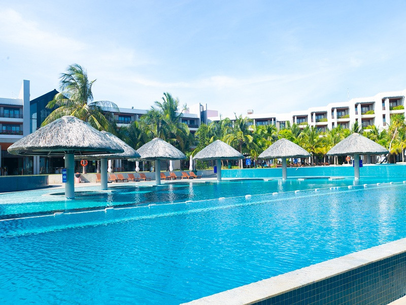 08h00: Tự do tắm biển, hồ bơi và sử dụng các dịch vụ cao cấp tại đây: Hồ Bơi, bãi biển, dù lượn, Moto,… thưởng thức hải sản (chi phí hải sản tự túc)