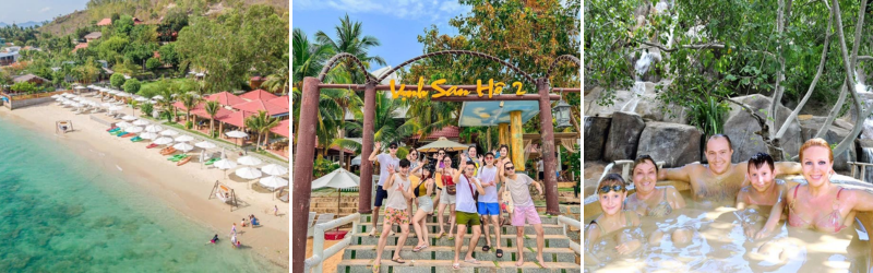 - Bãi Sỏi điểm dừng chân có bãi biển siêu rộng với hàng dừa xanh mát cùng ghế nằm chỉ có tại Bãi Sỏi. Tại đây quý khách tự do tắm biển, ngắm nhìn những rạn san hô nhiều màu sắc. Khám phá đại dương bằng lặn biển bình khí hoặc đi bộ dưới biển với hàng trăm loài cá, san hô quý hiếm, ngoài ra bạn chơi jetski, dù bay, phao chuối... (chi phí tự túc).