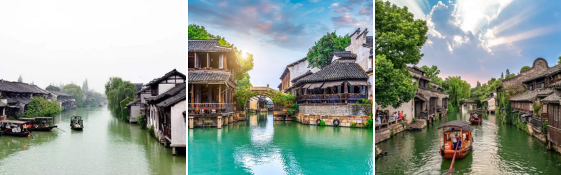 - Ô Trấn (Tây Sách) - là một trấn cổ sông nước lớn nhất Trung Quốc với hơn 1300 năm lịch sử thể hiện qua những cây cầu đá cổ, những con đường lát đá và những công trình gỗ chạm khắc tinh tế. Gần như vẫn giữ được kiến trúc cùng tập tục sinh sống hơn 1.000 năm qua nên Ô Trấn trở thành điểm du lịch mà ai cũng muốn đến một lần.